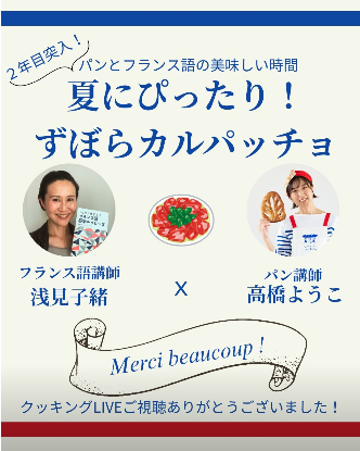 2025年8月のコラボLIVEは、はじめてのクッキングLIVEに挑戦しました。猛暑で火をつかいたくない日も簡単にできるさっぱりレシピ。新刊『1か月で復習するフランス語フレーズ』にも登場する一品です。